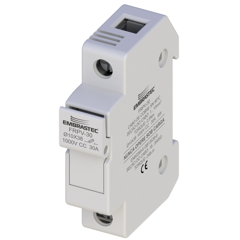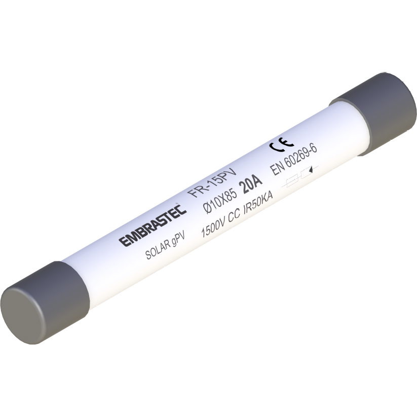 A Embrastec possui fusíveis de 1000Vcc com as correntes de 15A, 20A e 25A e para a tensão de 1500Vcc nas correntes de 15A e 20A.